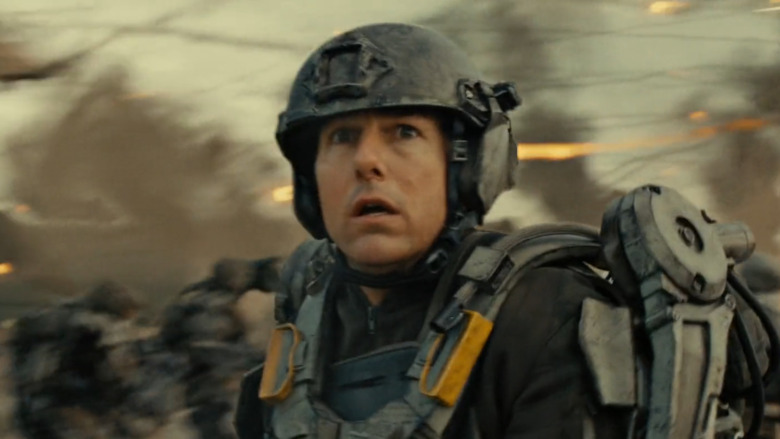 The time-looping sci-fi thriller "Edge of Tomorrow" gives viewers a lot to process, so it's a good thing events repeat themselves so often. Despite that fact, audiences may have missed some things after the first watch or, at the very least, failed to fully appreciate some aspects of the film. Starring Tom Cruise as Major William Cage and Emily Blunt as Sergeant Rita Vrataski, "Edge of Tomorrow" tells of a years-long alien invasion that starts in Europe. Mimics, a polymorphic, hive-mind swarm of aliens, are seemingly unstoppable and are gradually taking over the Earth. After a hard-fought victory in the French city of Verdun, courtesy of Sgt. Vrataski's epic combat performance with just a single day's training in the advanced combat armor used to fight the invasion, Maj. Cage leads a major media push for enlistment, touting the seeming ease with which Vrataski dispatched of the alien forces — again, with just one day of training. Of course, Cage soon learns that a single day of training can last a long time if it happens within a time loop.