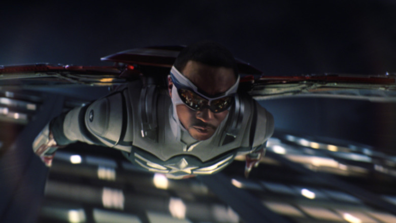 I think it was always that he would be Captain America with wings. Now, of course, they're new wings. They were Wakandan. It's a Wakandan suit, so it's coming from a slightly different tech place. He's not a super-soldier, so in order to be Captain America ... who that needs to be as a hero for the future that's relevant to our times, the wings are going to help him out because he can do things that Captain America, [that] Steve couldn't do. He's up in the air, so he has a whole other ... Not to mention he can do, if you remember, through some of his training, we had him ... We wanted him to be able to do extraordinary things with the shield so that he uses his body in a way that is very athletic, and he can do another set of extraordinary things as a human, as a sort of very fit, and I guess, extraordinary human nonetheless.