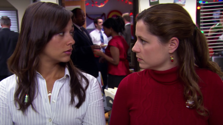 Karen and Pam were ambivalent about their feelings toward one another, but we did see them come together in Season 3's "A Benihana Christmas" episode. The two women formed an unlikely duo as they went toe-to-toe with Angela (Angela Kinsey) over competing Christmas parties, and they gelled quite well together. Karen and Pam made one another laugh, threw a heck of a party, and shut down Dunder Mifflin's biggest bully.