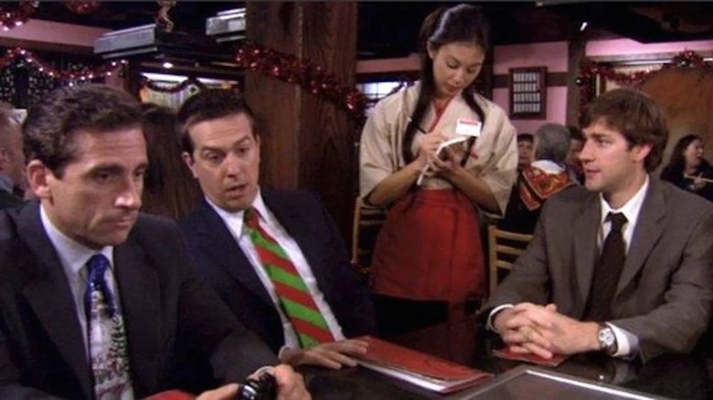 Michael has a lot of standout moments across "The Office," from burning his foot on a Foreman grill to leaving Dunder Mifflin a day early because he can't stand to say goodbye to his coworkers. While those beats may make the highlight reel, Carell was a master at finding little moments to infuse with meaning. In fact, "The Office" fans have gone back with a newfound appreciation for one small moment in particular from the Season 3 episode "A Benihana Christmas," which is rightfully considered the best "Office" Christmas episode in the entire series.