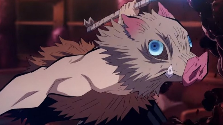 Even by anime standards, the world of "Demon Slayer" is full of strange and colorful characters. One of the most peculiar of them all is Inosuke Hashibira (voiced by Yoshitsugu Matsuoka and Bryce Papenbrook), a baby-faced but powerful member of the Demon Slayer Corps. Inosuke is something of a feral person, on account of growing up in the mountains without human interaction. This has left him with a slightly limited understanding of human nature, as well as a strange penchant for wearing a hollow boar's head as a somewhat creepy mask. Fortunately, there are also upsides. His peculiar upbringing, Demon Slayer training, and a host of other factors have made him one of the more powerful characters in a show full of powerful characters. So, what exactly can this literally and figuratively pig-headed young man do? Here are Inosuke's powers from Demon Slayer explained.