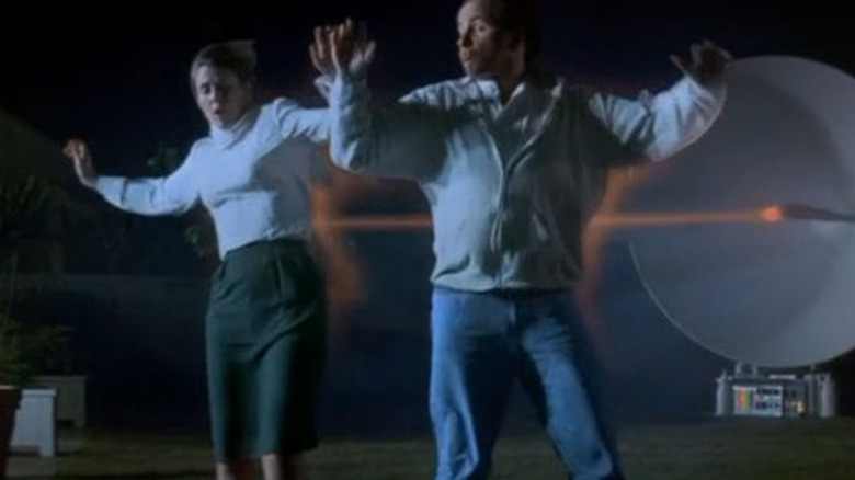 In 1992, Dawber and John Ritter shared comedy firepower in the 1992 family film "Stay Tuned." The film focuses on the dissatisfied life of tv-obsessed plumber husband, Roy Knable (Ritter), and his long-suffering wife Helen (Dawber). The husband is talked into buying a satellite dish which serves up 666 channels by Spike (Jeffrey Jones), a salesman with much more sinister designs. The couple are sucked into their TV set and forced to participate in Hellvision, which features parodies of various sitcoms and programs popular at the time. If they can last in the realm for 24 hours, the couple will escape with their souls. If not, they will be killed and their souls become the property of Satan.