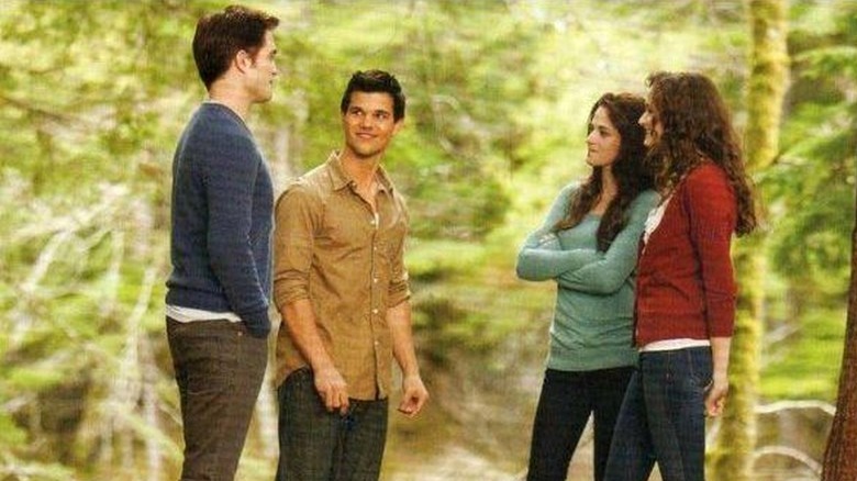 Edward's behavior towards Bella is frequently inappropriate — don't watch people sleep, dude — but Jacob is no better. His actions toward Bella grow especially toxic throughout "Eclipse," including kissing her against her will in a creepy attempt to prove she has feelings for him. Jacob refuses to take no for an answer, despite it being obvious to everyone in Forks that Bella only has eyes for Edward. Moreover, Jacob and Bella kiss in "Eclipse" entirely due to Jacob's manipulation. After he storms off upon discovering Bella and Edward's engagement, Bella tries to calm him down, as she's scared of him rushing into the fight against the violent newborns. Jacob plays on this and demands Bella give him a reason to stay safe. She tells him how much he means to her, but he tells her that's "not enough." So she kisses him.