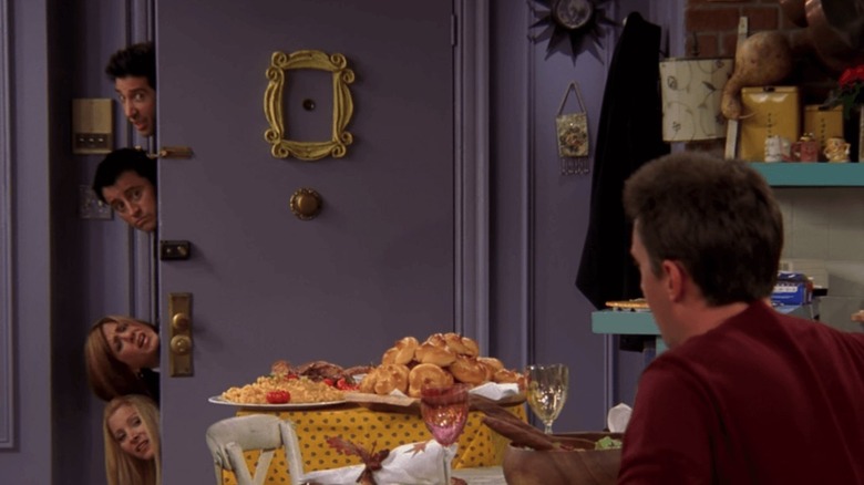 Perhaps one of the best last-minute decisions the "Friends" writers ever made was nixing a plotline that would have relocated the group to Minnesota. Yep — Minnesota. This shocking potential plot twist, revealed in the book "Generation Friends" by Saul Austerlitz (via Vulture), would have seen the six pals pack up and head to the frigid state. Chandler was going to be transferred because of his job, and the rest of the group was going to blindly follow him there.
