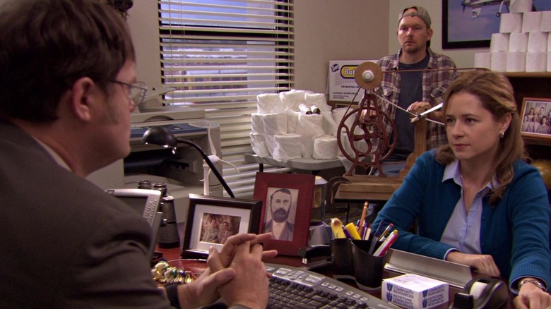 While Dwight is painted in a more nuanced light as the series progresses, he's definitely a bit of an antagonist for much of the run of "The Office," even into its later seasons. That is especially true in the Season 7 episode "China." By this time, Dwight has become the building manager and enacted a draconian rule that includes half-ply toilet paper and placing a roach billboard over the windows.