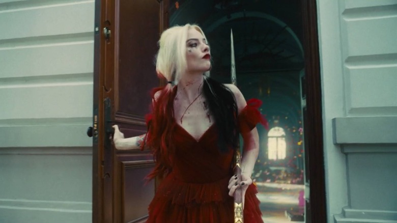 You weren't alone if you thought the colorful fight scene looked familiar. In "Birds of Prey," when Harley goes to the police station, a similar-looking fight breaks out where it seems like she's shooting people with smoke bombs and confetti. One way of looking at that scene is that all of the eccentricities are in Harley's imagination, and she's killing those men with real bullets. Something similar could be said for the sequence where she escapes from the Corto Maltese government. We know the guards aren't actually filled with flowers in place of blood, but that's merely what Harley perceives it. And some believe that's one of her superpowers.
