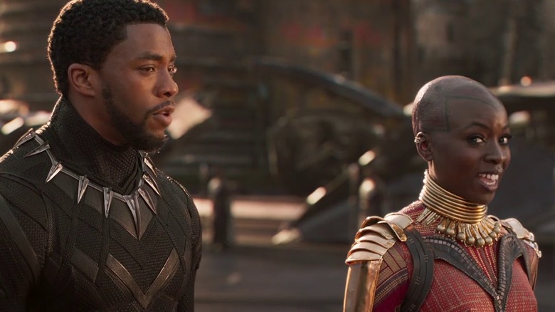 Towards the beginning of 2018's "Black Panther" T'Challa (Chadwick Boseman) retrieves Nakia (Lupita Nyong'o), an ex lover who he's clearly still smitten with, for his upcoming coronation ceremony. When they land in Wakanda, flanked by General Okoye and her Dora Milaje guards, they're greeted by T'Challa's newly widowed mother, Ramonda (Angela Bassett) and his younger sister, brilliant scientist Shuri (Letitia Wright). After Nakia gives her condolences for the death of the king, she heads off. T'Challa watches, prompting Shuri to ask Okoye, about her smitten older brother seeing his love interest again: