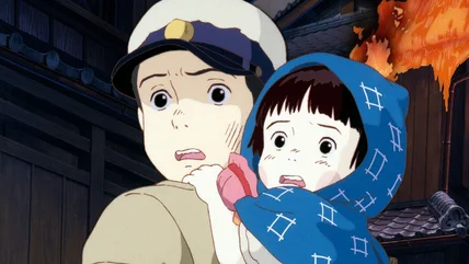 Seita is laid low when he learns Japan has officially surrendered, and that his father is likely dead. Upon his return to the abandoned shelter the siblings call home, Setsuko, deep in a hallucination, offers him a pair of rocks to eat. Though Seita has managed to scrounge up some food, Setsuko is too wasted from malnutrition for it to make a difference. She dies clutching a half-eaten slice of watermelon.