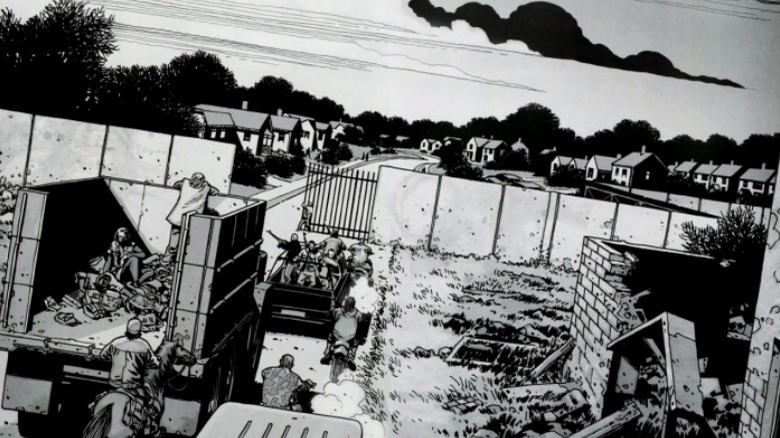 It's evident that Alexandria is a major piece to the "Walking Dead" puzzle on the television front, but what about in the source material? Well, it enjoyed a lengthy run in the "Walking Dead" comic line, debuting in issue #69 and last appearing in #187, going from a haven to a battleground just as it did on the small screen. However, all of the events that came to define the place would have never come to fruition had Robert Kirkman stuck by his initial vision for Alexandria's function in the wider story.