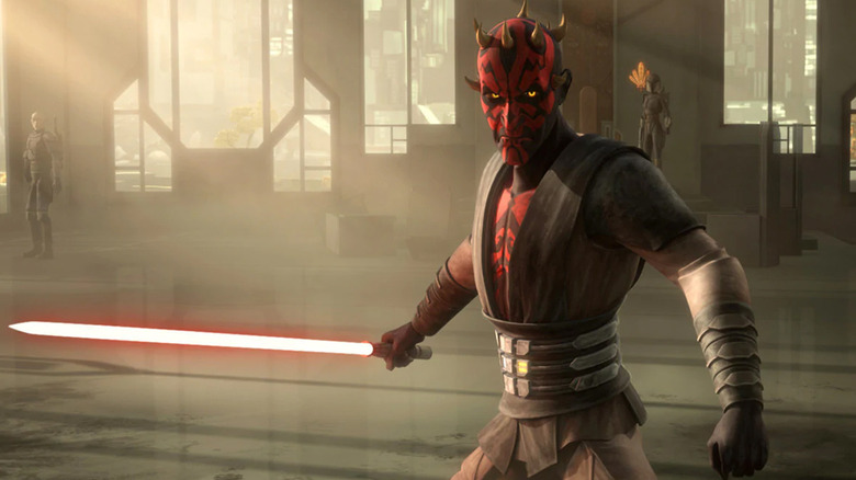"Star Wars: The Clone Wars," which is a cartoon that mostly fills in "Star Wars" canon between Episodes 2 and 3, begins to details Darth Maul's return in its fourth season. In short, Maul — technically his new name, given that he's no longer officially a Sith apprentice — takes over the planet Mandalore and commands multiple criminal organizations from throughout the galaxy. Already, then, this positions Maul as an important figure in Boba Fett's lineage, given that he at one point served as official leader to the Mandalorian people, from whom Boba Fett is descended. In a discussion thread on Reddit about the "Book of Boba Fett" trailer, one fan even directly likened Boba Fett's takeover of Jabba the Hutt's empire to Maul's takeover of Mandalore, further linking these two storylines.