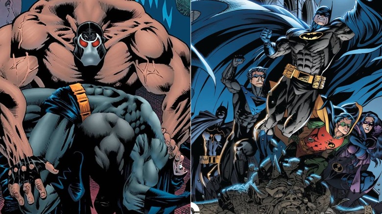 The first, and most obvious, is the "Knightfall" saga. In "Knightfall," Batman encounters Bane, who has come to Gotham to tear down everything the Dark Knight stands for. He blows up Arkham, releases the inmates, and sets some of Batman's worst enemies on him in order to break his spirit. Then, after weakening Batman — who he knows is secretly Bruce Wayne — Bane breaks his back. Taking time to recover, Bruce passes his mantle onto an ally who becomes all-consumed with the Batman persona. Thankfully, Bruce reclaims his cape and cowl soon after.
