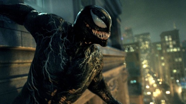 Now that "Venom: Let There Be Carnage" has been out in the world for quite some time, most Marvel fans are well aware that Tom Holland briefly shows up at the end of the film. He appears in the film's post-credits scene when Eddie and Venom are randomly transported into a hotel room in the Marvel Cinematic Universe, where a news report reveals Peter Parker's identity to the world. It's a surprising moment because up until now, the "Venom" films took place in their own separate Sony universe. This is largely because Sony holds the rights to the web-slinger and all the villains and supporting characters connected to him. But since Disney and Sony have been playing nice in the last few years (aside from a brief disagreement in 2019), they're clearly interested in having Spider-Man and Venom fight at some point in the future.