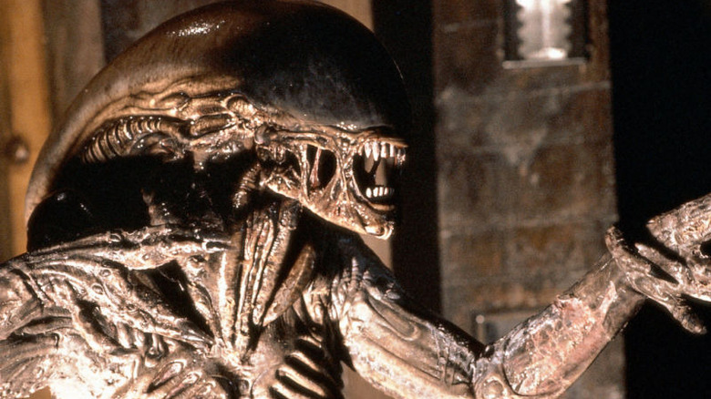 In the late '70s, H. R. Giger designed one of the most horrifically terrifying movie monsters of all time in the fabled Xenomorph of the "Alien" franchise. With a skeletal build and an intense snarling jaw, would-be victims might as well kneel down and pray for a quick end as this death machine approaches. Glistening from the moisture that seems to fill the air in the hot spots these creatures are known for inhabiting, the alien — or Xenomorph, as it is designated in the films — is known for all sorts of fun surprises like its sharp and deadly tail, a secondary jaw that can launch from its mouth and punch a hole through flesh, and acidic blood capable of eating through the hulls of futuristic ships, setting crew members up for a devastating ride should they not resolve the problem quickly.