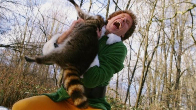 After saying goodbye to the North Pole, the surrounding enchanted lake, and the nearby candy cane forest, Buddy finds himself in the land of men, where things are considerably less magical and whimsical. This is driven home when Buddy spots a raccoon messing around in the snow and gleefully approaches the little creature to give it a hug.