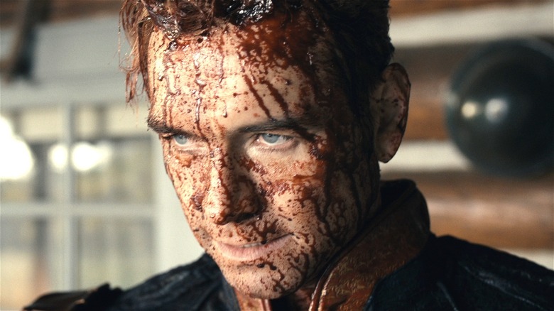 Unlike many characters in the bloody and brutal superhero show, newcomer Blue Hawk (Nick Wechsler) looks to be an all-new creation for the series — one not drawn from the Garth Ennis comic book series that the blockbuster show is based on. The closest comparison would be the Wolverine-type member of The G-Men (an apparent dig at Marvel's X-Men) called Ground Hawk, but he was borderline feral in the comics, and this mustachioed fellow appears relatively tame. Just look at him there — he's even wearing a helmet. For safety. Given what appears to be pilot attire, there's a chance this hero could in fact be a riff on DC's Blackhawks, instead.