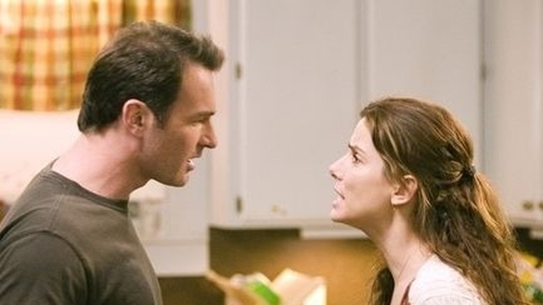 The 2007 thriller "Premonition" focuses on Linda Hanson (Sandra Bullock) and her husband, James "Jim" Hanson (Julian McMahon), who are parents to young children named Megan (Shyann McClure) and Bridgette (Courtney Taylor Burness). The movie begins with a police officer letting Linda know Jim had passed away following a horrific accident on the highway. However, a few hours later, she is greeted by her husband, who is eating breakfast in the kitchen, completely unscathed. While she is initially relieved, the mother of two slowly understands that the days of the week of Jim's fatal accident have been scrambled, but only for her.