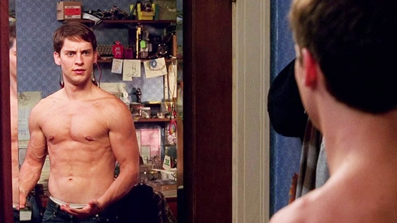 What really makes Maguire's transformation special, though, is that it's about so much more than just his muscles. Alongside lifting weights, the actor trained in gymnastics and martial arts to be able to truly bring the character to life onscreen in his own way. Maguire went through a grueling training process for 2001's "Spider-Man," and he fought his way through a chronic pain condition instead of compromising on stunts in "Spider-Man 2." Without Maguire's incredible dedication, Raimi's films wouldn't have been nearly as successful, and who knows if superhero blockbusters would ever have come to dominate cinema. You've seen his films, and loved at least two-thirds of them, but now take a look at how Tobey Maguire got ripped to play Spider-Man.