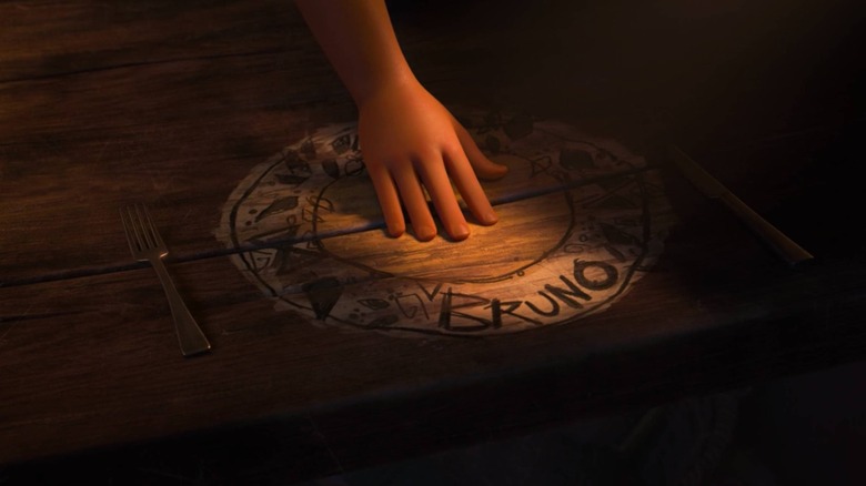 As Mirabel peers through a crack in the wall, she notices Bruno set up a spot to eat right next to the family table. He even drew a plate with the name "Bruno" written on it so that he could feel like he was still part of the family. It shows how all he really wanted was to be accepted and for people to look past his powers. The moment was resonant with many fans of the film, who took to Reddit to voice their opinions, like u/TerrytheMerry: "Okay but heart f***ing broke when I saw Bruno's table setting. That has to be the most quietly heartbreaking things I've ever seen in a Disney movie."