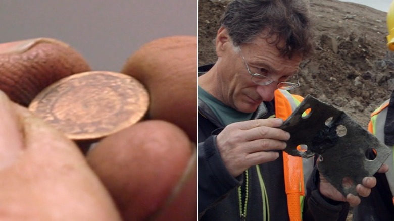 Pulling up a large boulder, Drayton and Lagina find underneath a large copper twopence coin featuring the face of King George III. This specific style of coin was only minted in 1797 and was made of copper instead of the usual silver. This caused the coin to be much larger than its twopence counterparts, which led to the coins being commonly known as a cartwheel.