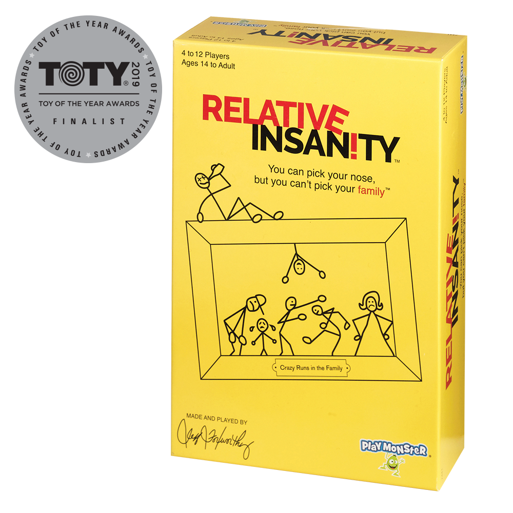 Relative Insanity contains two decks. First, there are the Setup Cards, each designed to be the setup of a joke – such as "Halfway through my grandmother's funeral, my uncle leaned over to me and said ... " Meanwhile the Punchline Cards offer hundreds of possible punchlines, like "I gotta get my groove on," or "I feel pretty today!" For every round, the judge draws a Setup Card and the other players each play a Punchline Card. Points go to the player whose punchline the judge finds the funniest.