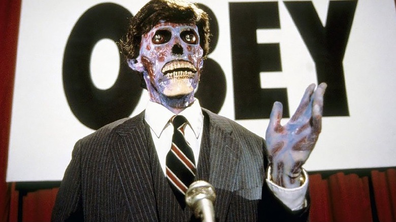 "They Live" is a John Carpenter sci-fi thriller that evokes more terrors from its not-so-subtle commentary on society than it does from the aliens that have invaded society. Professional wrestler-turned-actor Roddy Piper starred in this 1988 flick as Nada, an odd drifter who starts to get the sense that not everything around him is at it seems. After hearing the ramblings of a man hacking television broadcasts and listening to the ominous warnings of a preacher, Nada finds a pair of mysterious glasses that enables him to see the world for what it is.