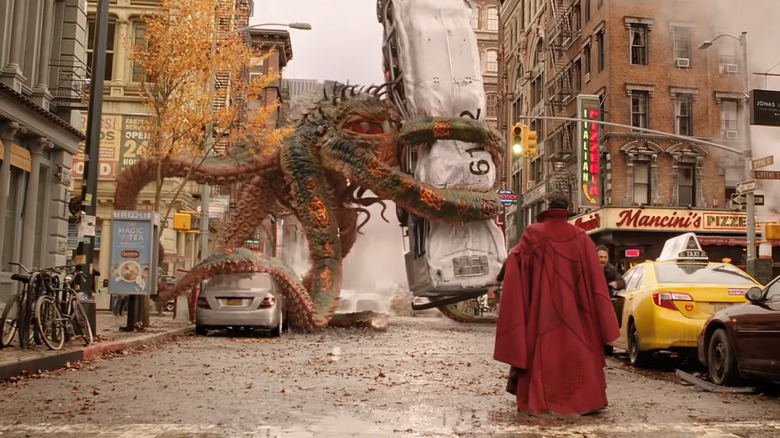 Watching Shang-Chi ride the Great Protector (think Falkor from "The NeverEnding Story" meets Haku from "Spirited Away") as he does battle with the Dweller is undeniably cool, but as a villain, the big bad Soul Eater is actually pretty dull. While it's definitely one of Marvel's scarier CGI designs, the character is totally forgettable, a mass of tendrils and teeth that's hard to make out in the dimly lit final showdown. By the time Shang-Chi blows the beast to bits, we're already missing his recently departed dad — the Dweller-in-Darkness ate Wenwu's soul after he released it, though not before he could pass the rings on to his son.