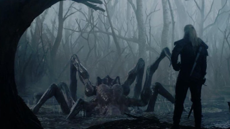 The kikimora is an insect-like monster that has appeared in almost every adaptation of "The Witcher," including the video games, novels, and comics. While they sometimes go by different names — such as kikimore rather than kikimora — they are essentially the same monster. This beast was actually the first one seen in the Netflix series, with Geralt making short work of the kikimora in the opening scenes of the pilot episode. Usually located in swamps, they resemble a spider-like creature with a humanoid head, giving them a truly frightening appearance that is utterly hideous.