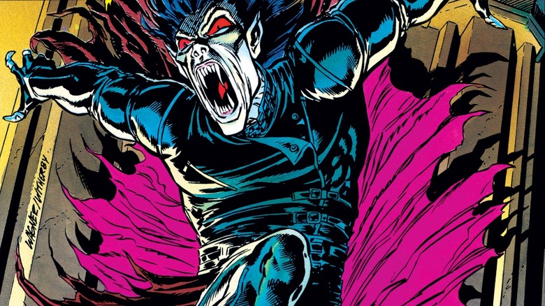 2022's "Morbius" is the first time the Living Vampire has starred in his own film. It also would have been his first live-action movie appearance period, had he not briefly shown up in an alternate, deleted ending to 1998's "Blade." On-screen sightings are still sadly few for Morbius, even in the realm of animation, where he's only been in "Ultimate Spider-Man vs. the Sinister Six" and, perhaps most famously, "Spider-Man: The Animated Series," which notably added suction cups to the character's hands. Interestingly, Morbius has made the most on-screen appearances in video games, both as a playable character in titles like "Marvel Avengers Alliance" and an important NPC in games like "Marvel's Spider-Man."