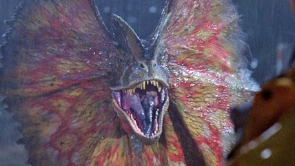 When audiences were first introduced to this dinosaur in the original "Jurassic Park," it was calm, gentle, and made no effort to attack or show any signs of aggression toward Dr. Grant (Sam Neill) and Dr. Sattler (Laura Dern). Its desired effect was to drive home the sense of beauty and wonder in seeing a dinosaur returned to life and, well, mission accomplished.