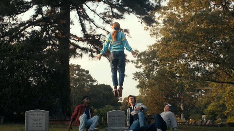 Max Mayfield (Sadie Sink) is featured front and center in this brand new trailer for "Stranger Things." Introduced in Season 2, Max has a bit of a tomboy personality, and is known for enjoying video games, cars, and skateboards. Early in the trailer we see the young "Dig-Dug" master talking at the grave of her slain brother Billy (Dacre Montgomery). Later, in front of the same grave, we see Max levitating several feet above the ground as her friends look on in absolute shock.