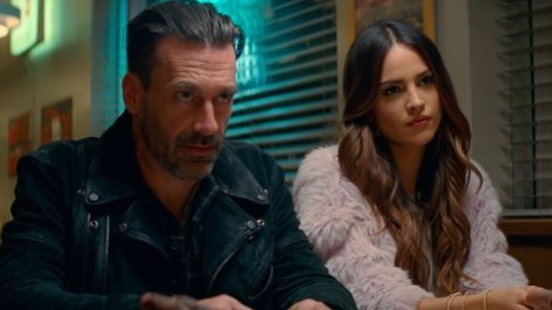 "The only person who is in the movie who I wrote with them in mind is Jon Hamm," recalled Wright in a 2017 interview round table with Hamm (via The National). The role of Jason "Buddy" van Horn — who is a drug-fueled bank robber making scores with his girlfriend Monica "Darling" Castello (Eiza González) — was one that the former "Mad Men" star didn't just enjoy playing; he relished every second of it. "It's fun to be the bad guy," Hamm said. "It's fun to be a person that obviously very few of us have personal experience with. How many of us get to steal cars and do crimes and shoot guns?"