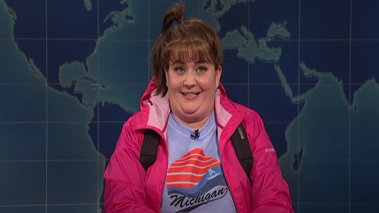 The satirical news sketch "Weekend Update" has been part of "SNL" since its inception. It has seen several different hosts and even more special correspondents over the years. The segment has often been a showcase for cast members to try out different characters who may not work in other sketches. Aidy Bryant has had a few herself, but the one that stands out the most — thanks to her naïveté, enthusiasm, and charm — is that of 7th-grade travel expert Carrie Krum.