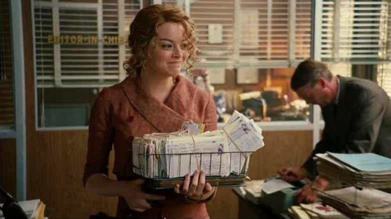 In the novel, Skeeter arrives home from college wanting to be a serious writer, but in order to start out, she applies for a job writing for the Jackson Journal. In the book, Skeeter gets offered the job of writing the cleaning and housekeeping advice column "Miss Myrna." She tries not to act so shocked by the offer, but when the editor says he can only pay her $8 a week, she's so pleasantly amazed at the amount that she gasps in disbelief. Thinking that Skeeter is offended by the rate, the editor quickly agrees to $10 a week.