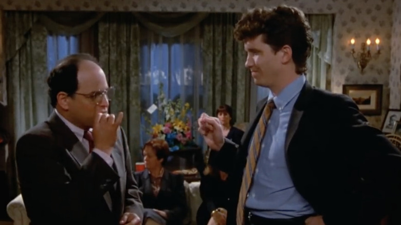 One of the more recognizable faces to guest star on "Seinfeld" came in Season 6's "The Scofflaw," which featured comedian Jon Lovitz playing Gary Fogel, a mutual friend of Jerry and George. At the start of the episode, George bumps into Gary, who reveals to him he is undergoing chemotherapy for cancer (something he also privately confided in Jerry months before). Later, though, Gary comes clean to George that he's actually been lying and that he never actually had cancer at all, but has been merely using the perks associated with the diagnosis — such as Jerry buying him an expensive, realistic wig — to his benefit, hiding the truth from him in the meantime.