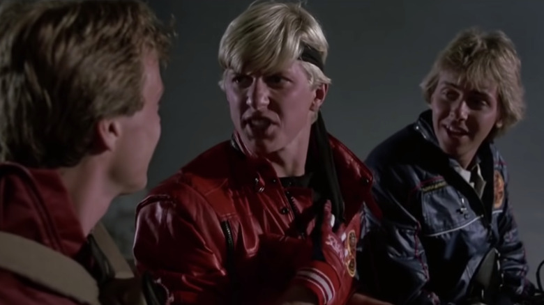 If there's one thing about Johnny Lawrence that everyone knows, it's that he's a fan of all things '80s. Whether he's blasting bands like Poison or Guns N Roses, or making his son's middle name "Swayze" (yes, really), Johnny knows how to keep the spirit of the '80s alive well into the 21st century. But did you know that his all-time favorite movie is actually a "Top Gun" ripoff? That's right, according to "Cobra Kai," Johnny's favorite film is a 1986 military action film called "Iron Eagle," which starred Jason Gedrick and Louis Gossett, Jr. It's no wonder he would end up naming his own dojo "Eagle Fang Karate."