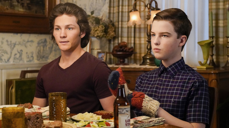 For example, in Season 5, Sheldon's brother Georgie (Montana Jordan) unexpectedly learns that he is going to become a dad. The latter half of Season 5 deals with a number of rather serious events in the Cooper family, and seems to set the stage for Sheldon's rough teenage years and the unfortunate patch of luck the Cooper family falls to, as referenced by adult Sheldon (Jim Parsons) and his mother, Mary (Laurie Metcalf), in "The Big Bang Theory." The season finale shows George Sr. (Lance Barber) fired from his position as the football coach, perhaps setting the stage for his fall from the pedestal of a good father to something more befitting of adult Sheldon's description in "The Big Bang Theory."
