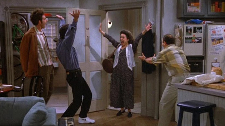 Jerry's standup comedy routines often set the stage for many "Seinfeld" episodes. His analysis of true-to-life foibles and banal observations are particularly humorous, with a modern sensibility that's still (mostly) relevant today. More than just serving as a reminder of Jerry's career, these sequences also showcase the type of comedy that "Seinfeld" excels in, beyond the standup stage. This is all to say, the humor in "Seinfeld" is watching the main characters find themselves in awkward situations that are relatively commonplace and seeing how they react.