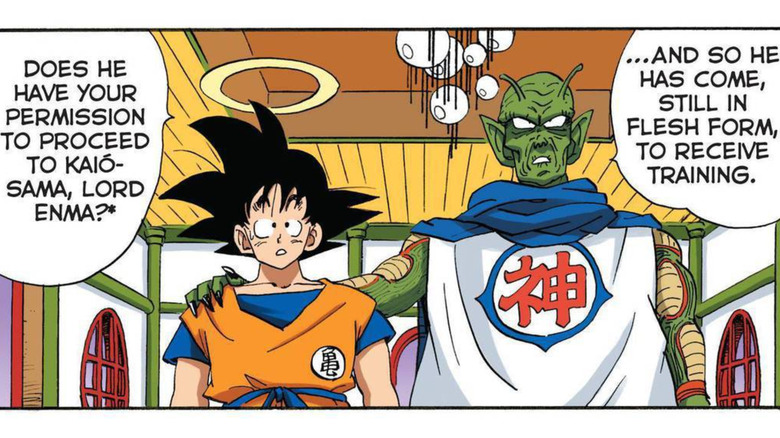 While the Grand Kai's also appeared in the "Dragon Ball Z" movies, "Dragon Ball GT," and even "Dragon Ball Z Kai: The Final Chapters," he doesn't show up in the original manga at all. One might easily think that, like North Kai's grasshopper Gregory, the Grand Kai is an anime-only character. Leave it to Piccolo, then, to confirm the character does exist in the manga version of the Dragon Ball universe. The reveal happens after Piccolo forfeits his match with the mysterious Shin, who he believes to be the Grand Kai. Shin quickly corrects him, however, explaining he's actually the Supreme Kai, instead. That scene, which the anime adapts pretty faithfully, proves that the Grand Kai exists somewhere in the source material. Perhaps one day, the "Dragon Ball Super" manga will finally deal the Grand Kai in.