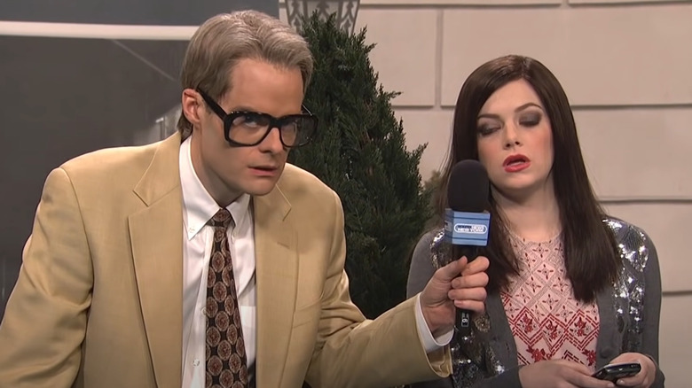 In interviews, Bill Hader has often talked about how he encountered perpetual stage fright during his time on "Saturday Night Live." In 2013, Hader explained these difficulties in an interview with Playboy. "During my first two seasons I wouldn't sleep on Friday night," Hader said. "I'd be up all night." According to Hader, he was already frightened about not being good enough to be on the show, and he worried about getting fired (via GQ).